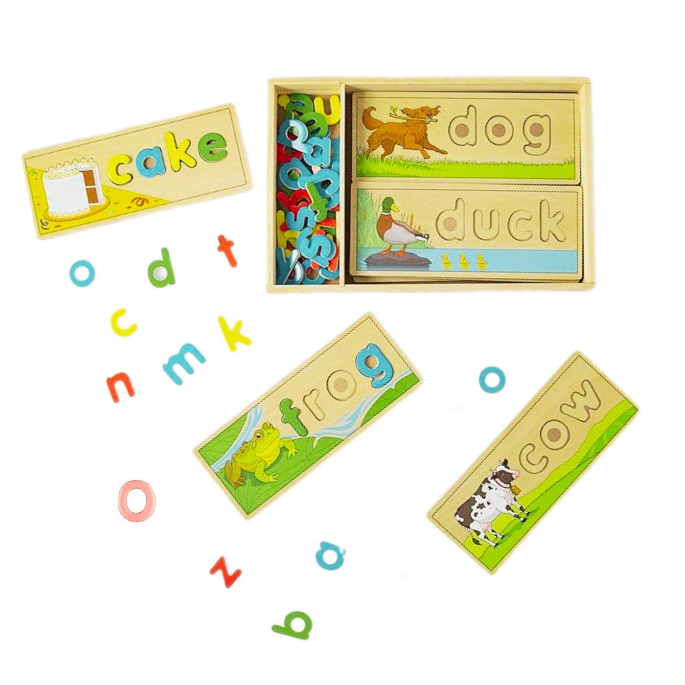 - Melissa & Doug See & Spell Learning Toy – Wooden letter puzzle board with 8 double-sided spelling boards. Excellent for letter recognition and spelling.